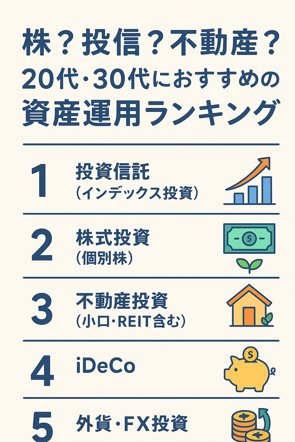 スキルアップ 株?投信?不動産?20代・30代におすすめの資産運用ランキング はじめに「資産運用」と聞くと、なんだか難しそうで自分にはまだ早い…と思っていませんか?しかし、20代・30代は 「資産運用のゴールデンタイム」。なぜなら、時間を味方につけられるからです。銀行に預けても金利はほぼゼロの時代。将来のためにお金を... 2025.09.20 スキルアップ金融知識